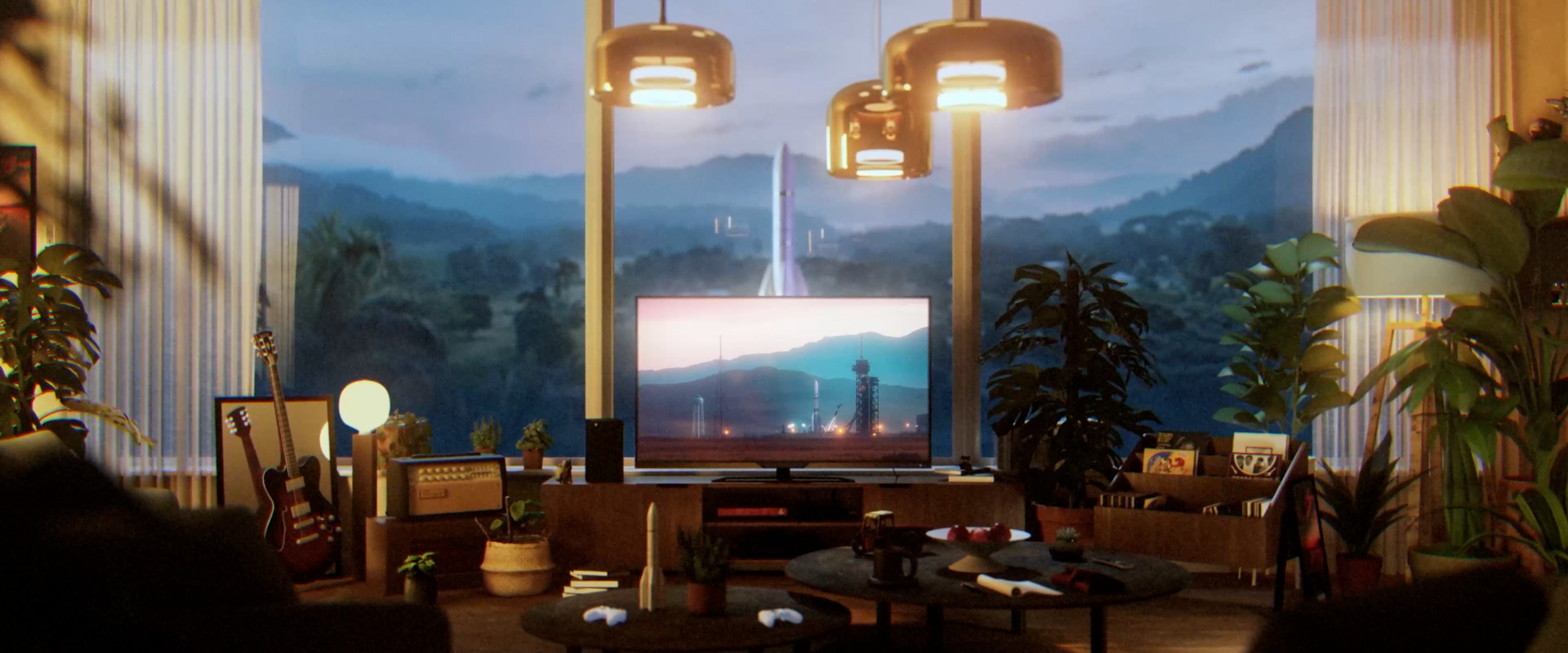 Concept : "Quand une fusée Ariane décolle, l'humanité s'élève avec elle". Une mise en scène en lévitation symbolisant le progrès et l'ascension collective.